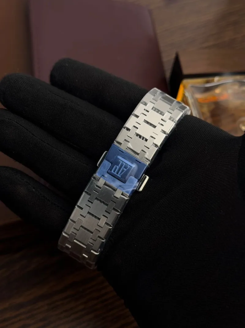 The stunning stainless steel silver bracelet features an AP folding clasp for a secure fit, combining style and comfort effortlessly. Whether you’re dressing up for a formal event or enjoying a casual outing, this watch is a true statement piece that reflects your impeccable taste.