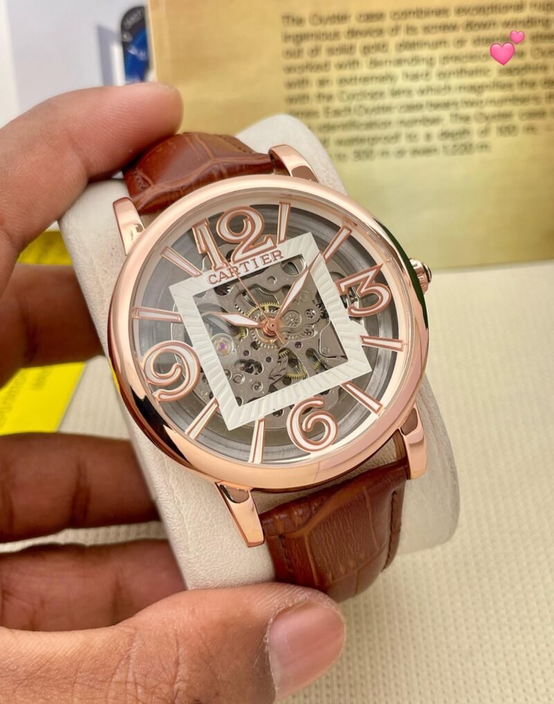 This Cartier Roman Figures watch is more than just a timepiece; it’s a statement. With its striking design and intricate details, it effortlessly combines rugged looks with elegance. The rotating tourbillon and transparent back showcase the craftsmanship that goes into every piece, making it a perfect addition to any watch collection.