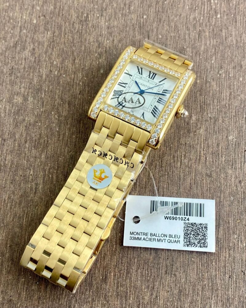 The Cartier W69010Z4 Golden Dial watch is not just a timepiece; it’s a statement of style and elegance. Crafted from high-quality stainless steel, this watch features a stunning golden bracelet that complements its sophisticated white dial adorned with sparkling silver diamonds.