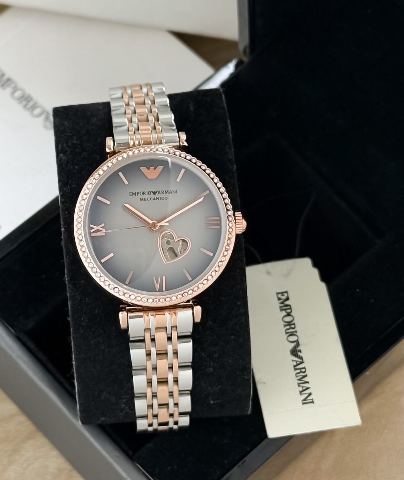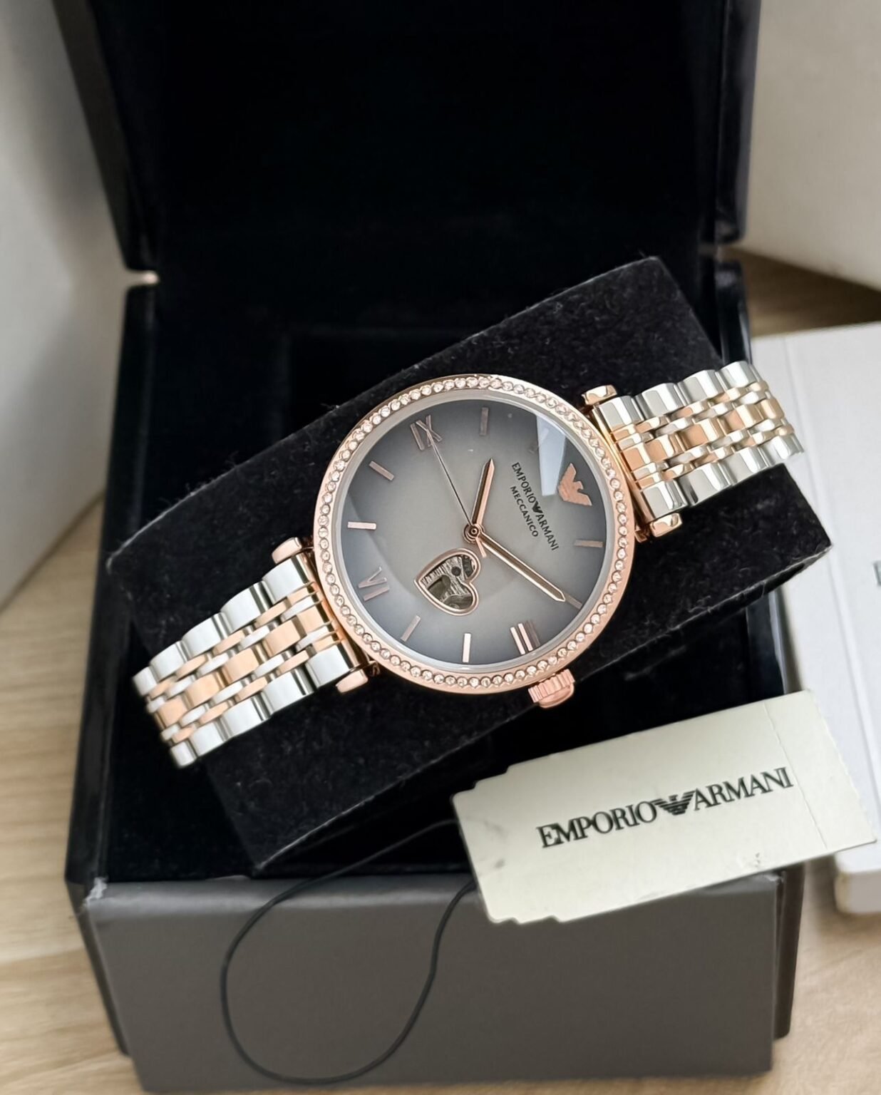 Experience the elegance of the Emporio Armani Automatic Timepiece. This stunning watch is not just about telling time; it’s a statement piece that reflects your style. The slim grey dial and copper case harmonize beautifully, making it perfect for any occasion.