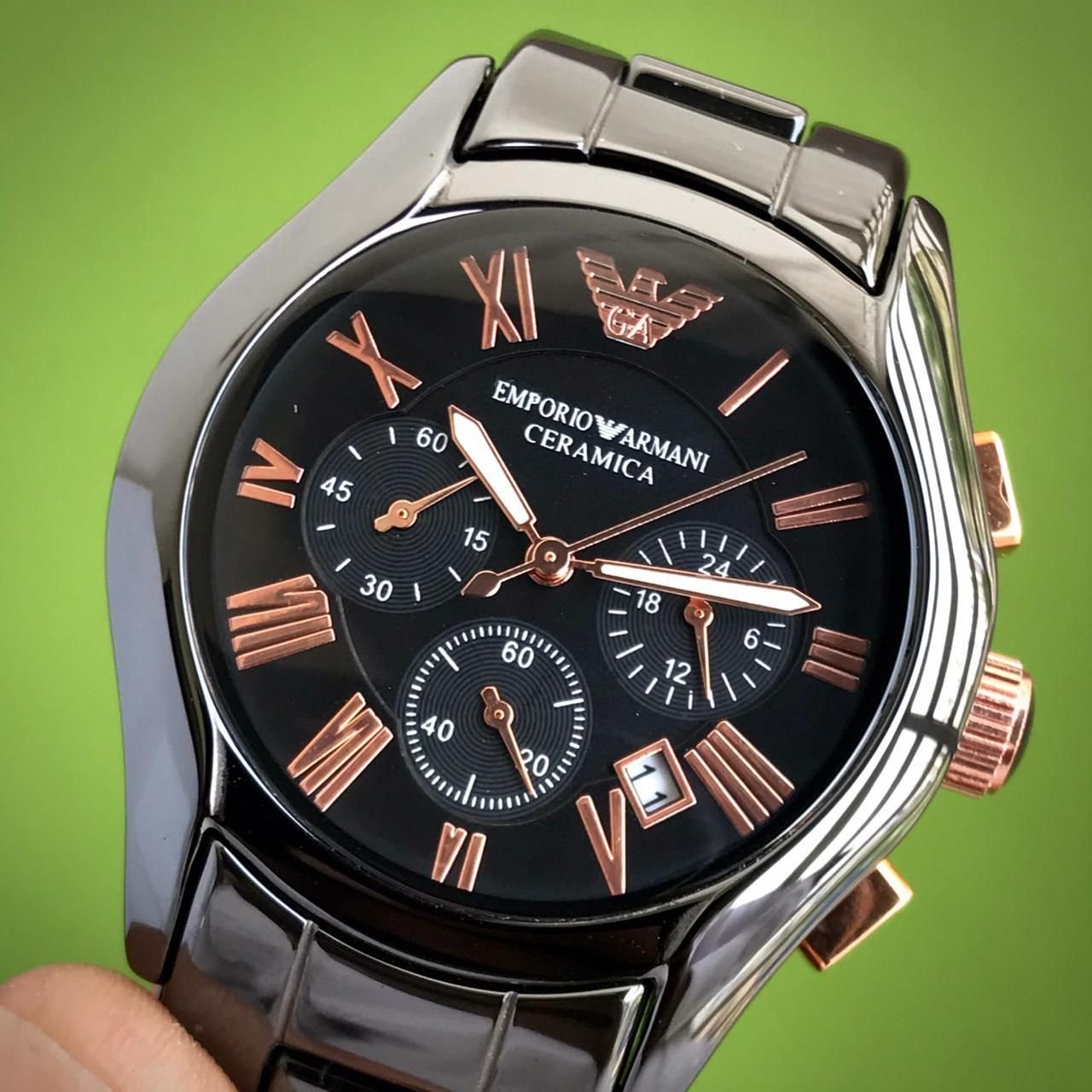 The Emporio Armani Black Dial Ceramic Watch is a stunning timepiece that combines style and functionality effortlessly. Its sleek black dial is beautifully complemented by a robust ceramic strap, making it perfect for both casual outings and formal events.