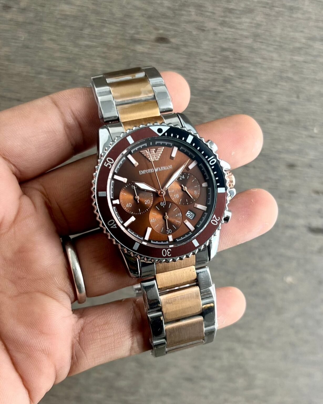 This Emporio Armani Brown Chronograph is designed for those who appreciate both functionality and style. The sleek design features a stunning green dial that adds a unique touch to any outfit, making it a versatile accessory for both casual and formal occasions.