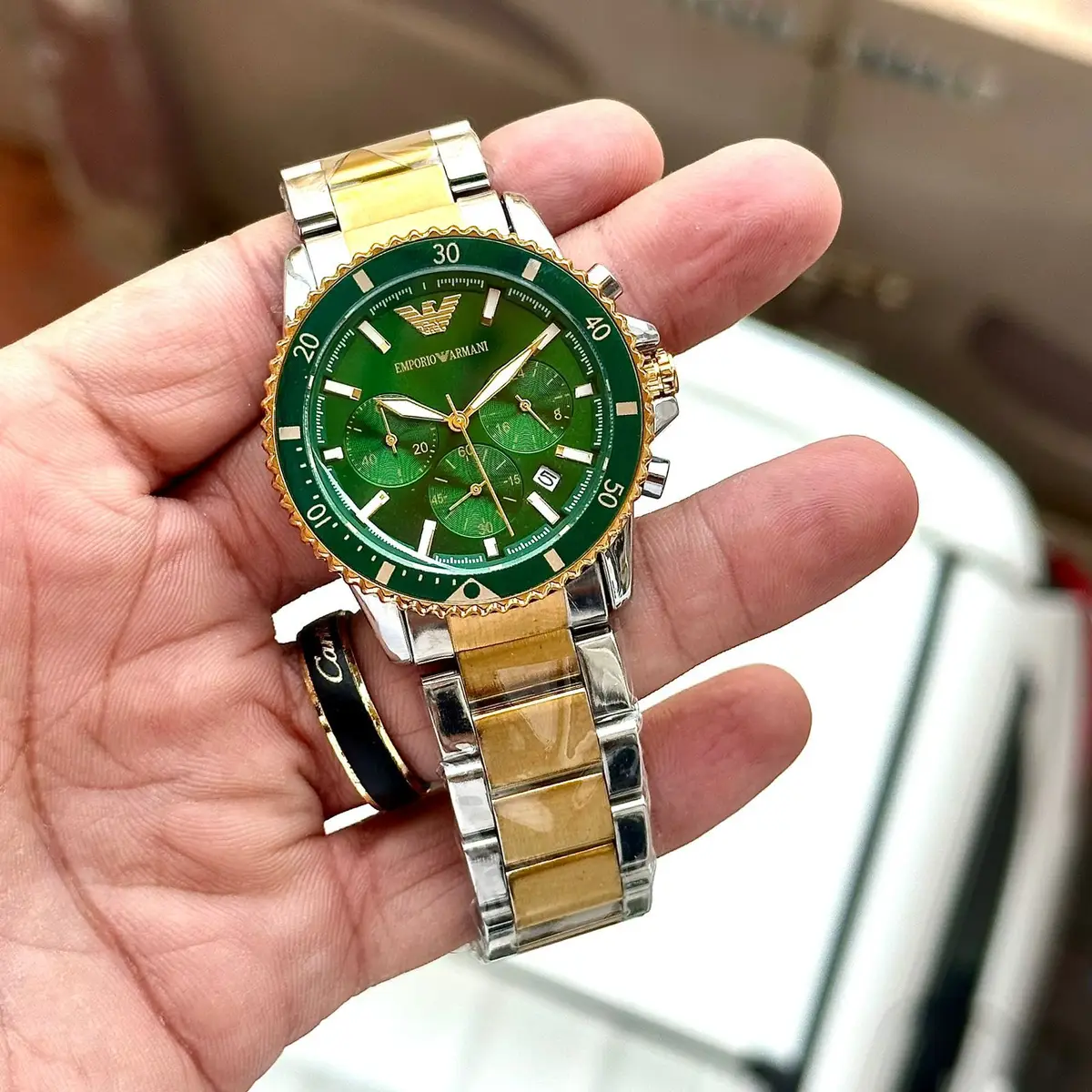 The Emporio Armani Chronograph is a perfect blend of style and functionality. With its sleek 42mm dial, it stands out without being overwhelming. The high-quality rubber strap provides comfort for all-day wear, making it suitable for both casual outings and special events.
