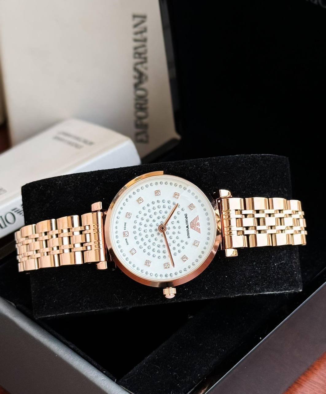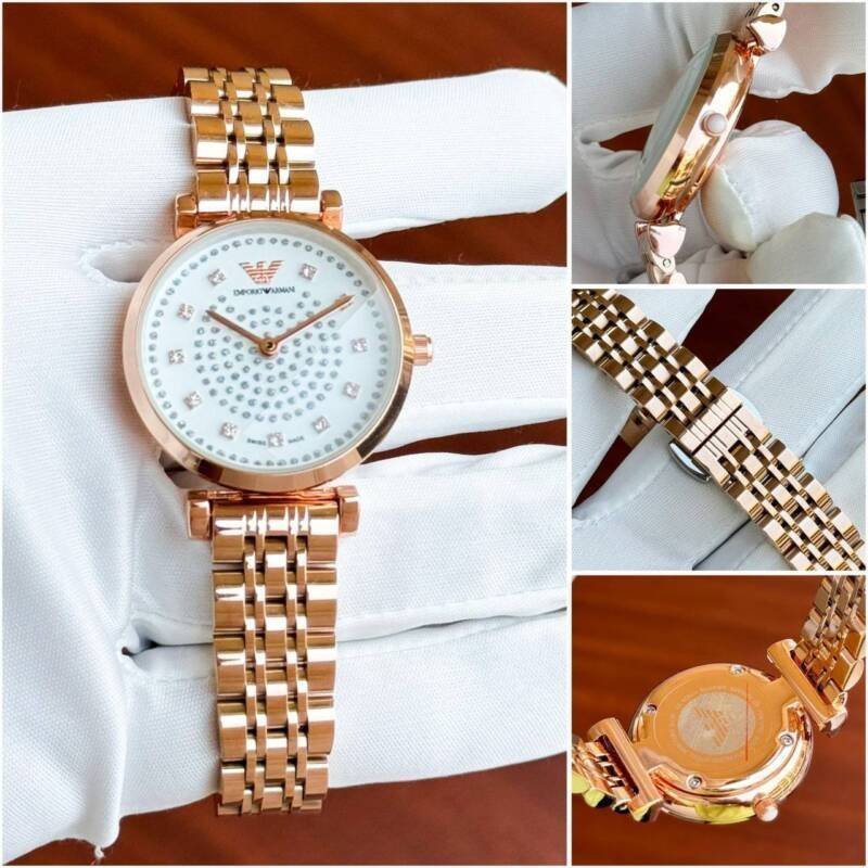 The Emporio Armani Rose Gold watch is a stunning piece designed for the modern woman. With its elegant rose gold case and slim profile, it seamlessly blends style with functionality. Whether you’re dressing up for a special occasion or adding a touch of sophistication to your everyday outfit, this watch is sure to impress.