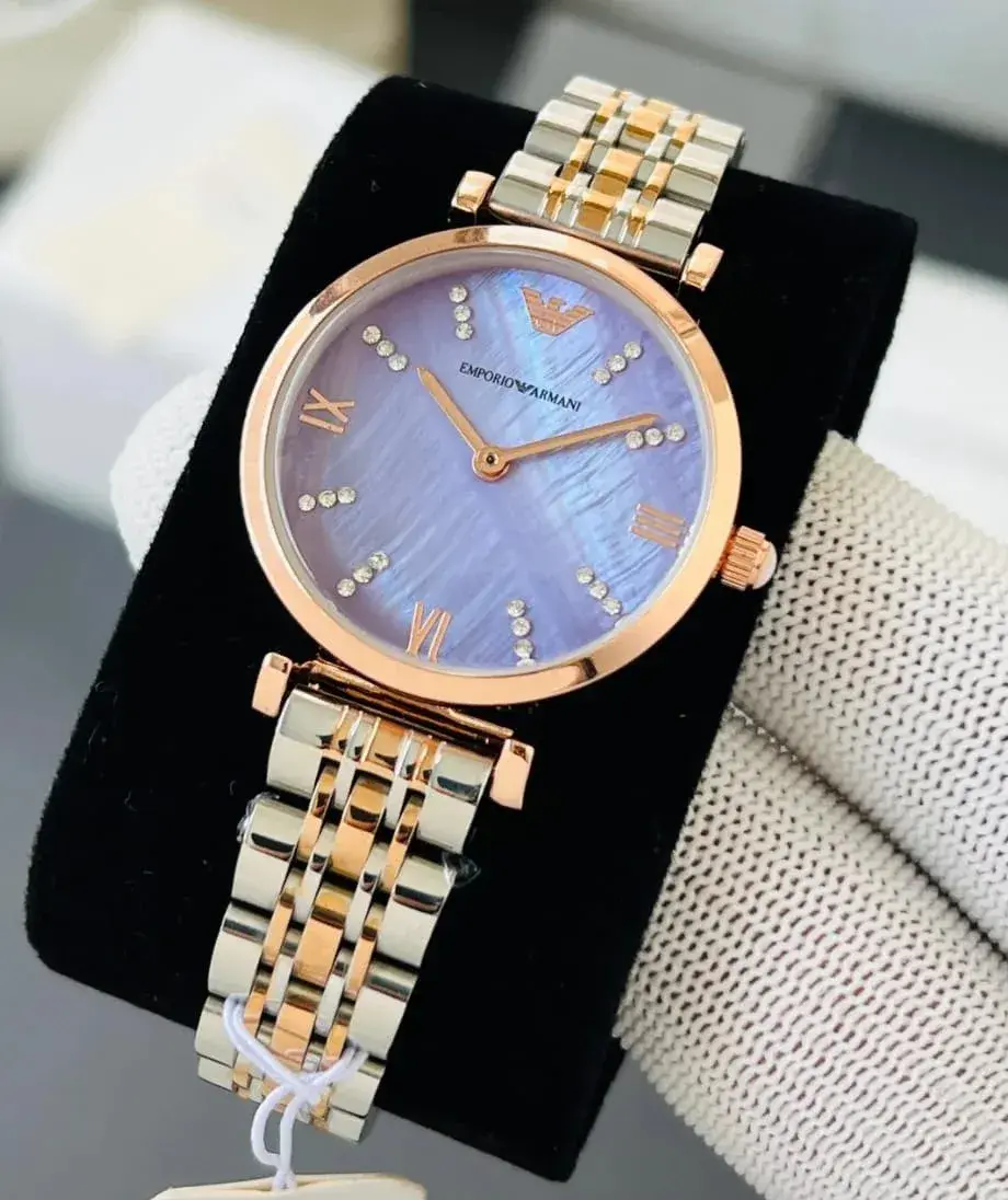 The Emporio Armani Ladies Watch with its captivating sky blue dial is a stunning addition to any woman’s accessory collection. This timepiece exemplifies the perfect blend of elegance and modernity, showcasing a refined aesthetic that is both versatile and sophisticated. Crafted with quality materials, the watch features a durable stainless steel case that enhances longevity while adding a touch of luxury.
