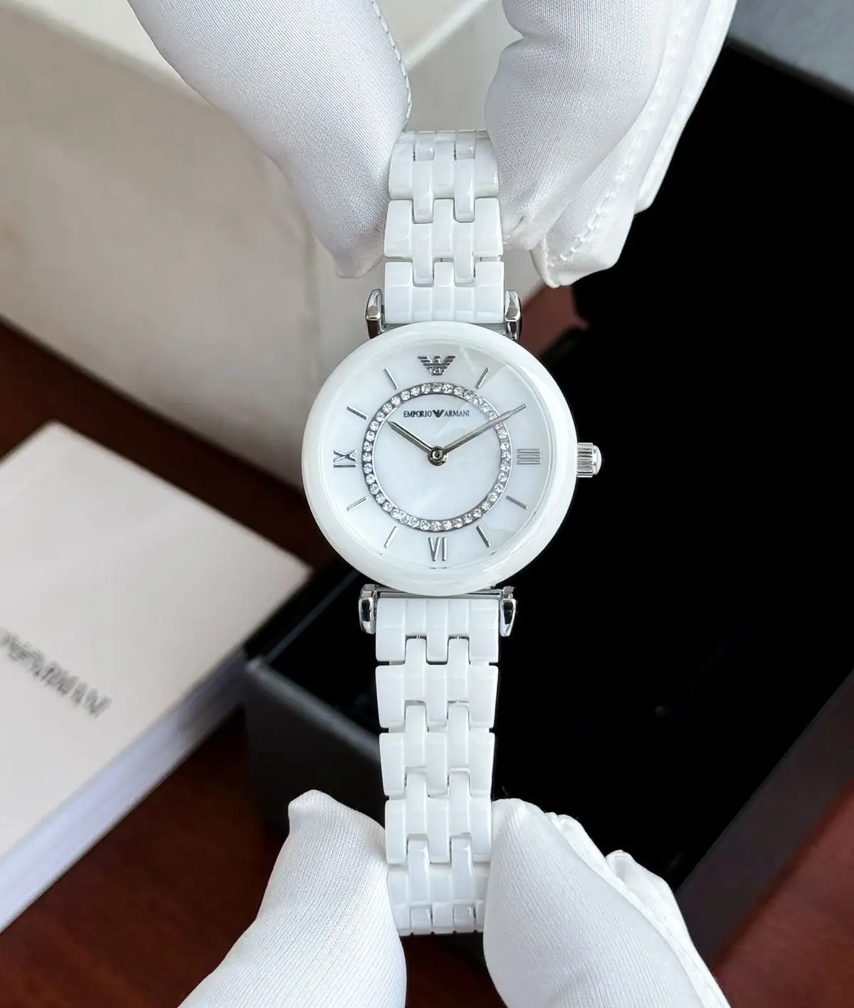 This Emporio Armani watch is a stunning piece that combines elegance with functionality. The striking white ceramic strap pairs beautifully with the round stainless-steel case, creating a watch that is both stylish and practical for any occasion. Its slim white dial not only enhances its aesthetic appeal but also ensures easy readability.