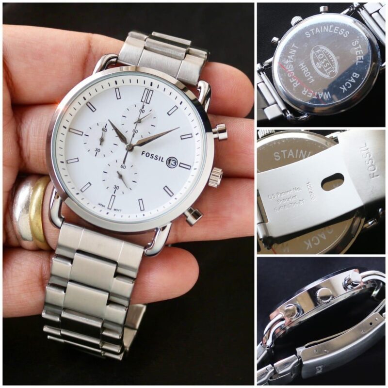 This is First Copy of Fossil Commuter Silver Chronograph Watch with White Dial.