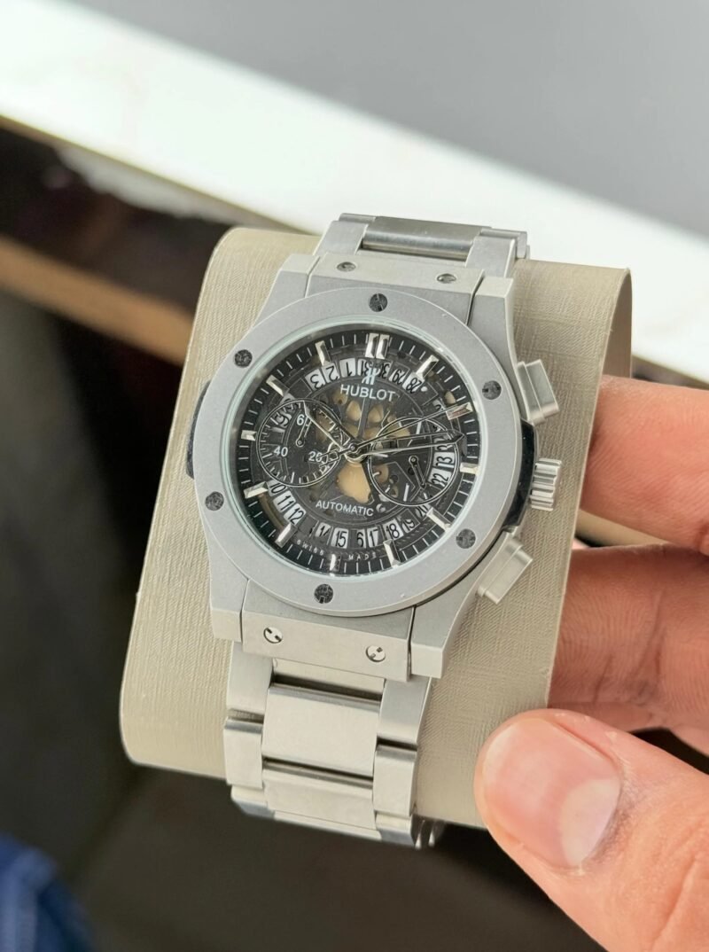 The Hublot Big Bang Chronograph First Copy watch from the 7AA Premium Collection is a stunning blend of style and functionality. Designed for the modern man who appreciates a bold aesthetic, this timepiece captures the essence of Hublot’s iconic watchmaking. The eye-catching 44mm dial, paired with a sleek metallic strap, delivers a commanding presence on the wrist.