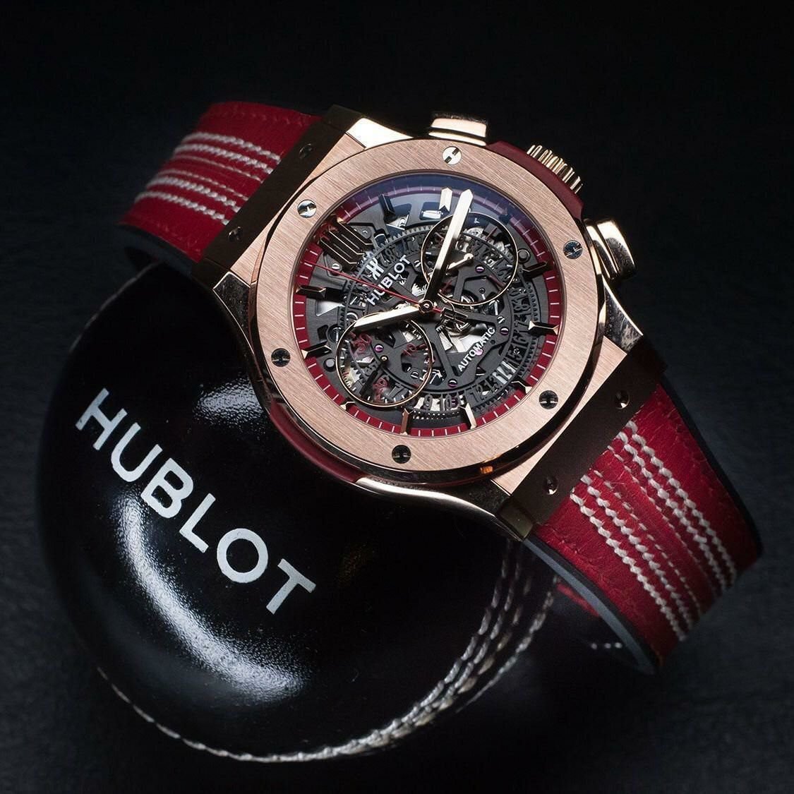 Get ready to make a statement with the Hublot Big Bang World Cup watch. This stunning timepiece is designed not just for style but also for functionality, boasting a chronograph that allows for precise timing. The striking red strap and rose gold accents make it a perfect match for any sporty outfit or casual wear.