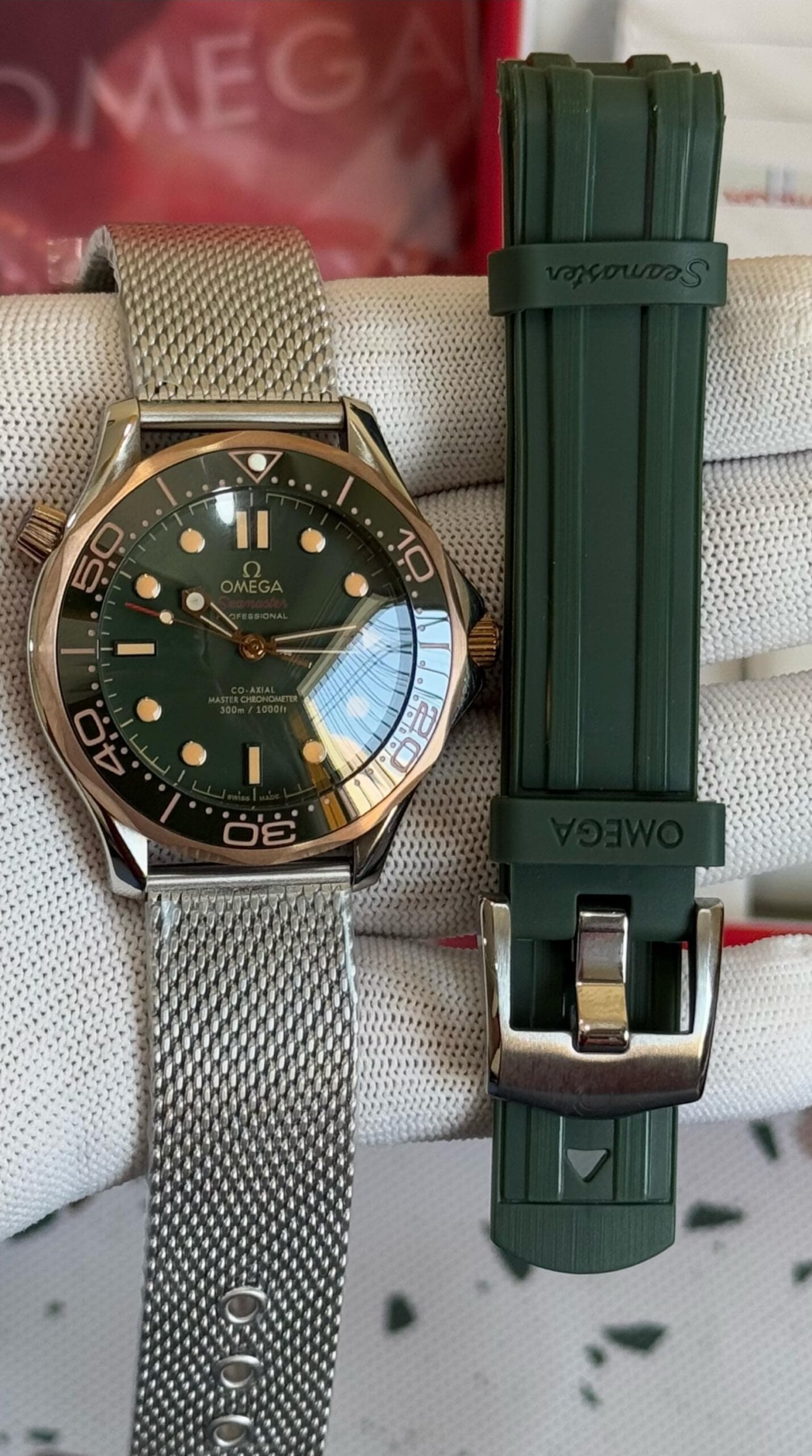 This is the First Copy of Omega Seamaster Diver 007 Green Edition With Additional Strap.