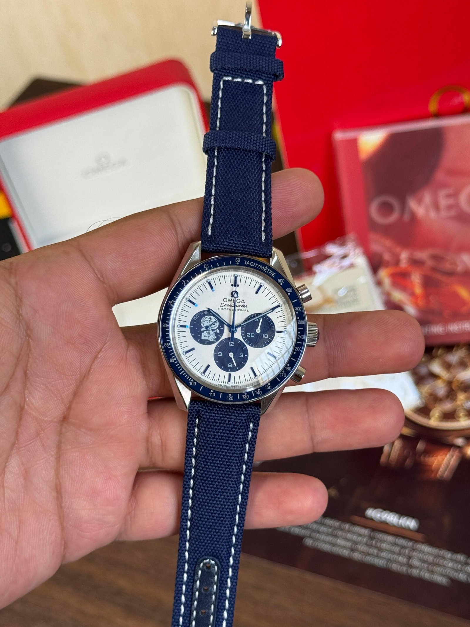 This is a First Copy of the Omega Speedmaster Snoopy Edition.