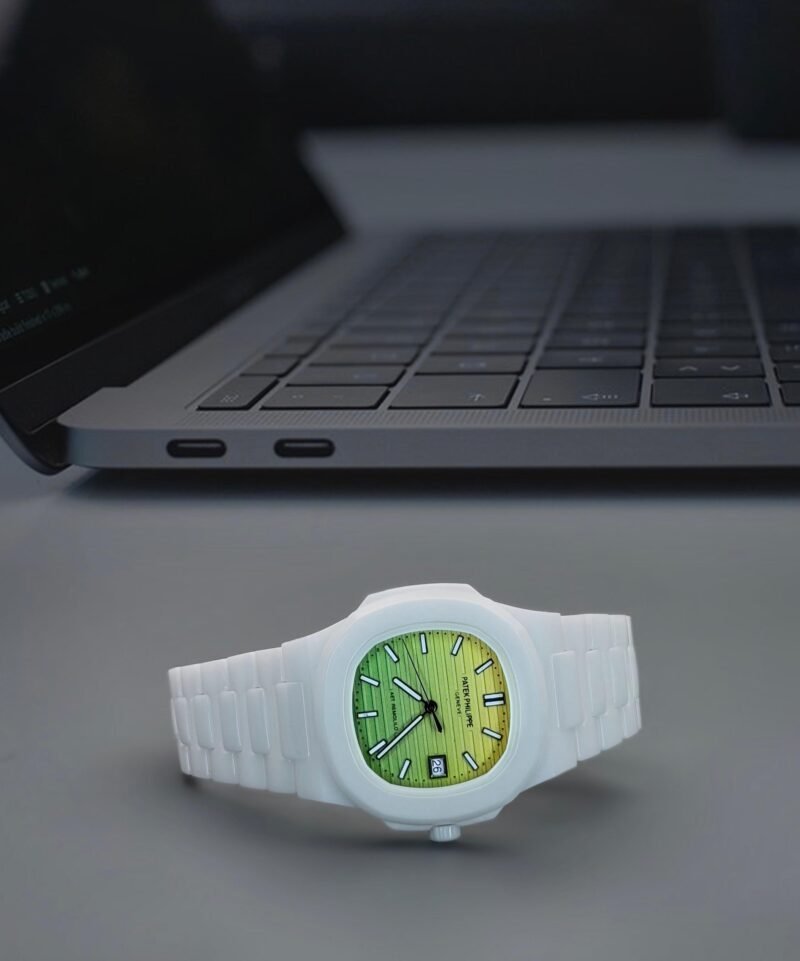 Step into a world of elegance with the Patek Philippe AET watch. The full ceramic design is not only eye-catching but also incredibly durable, making it a perfect companion for your day-to-day adventures. The crisp white band complements the sleek case, ensuring that you stand out in any crowd.