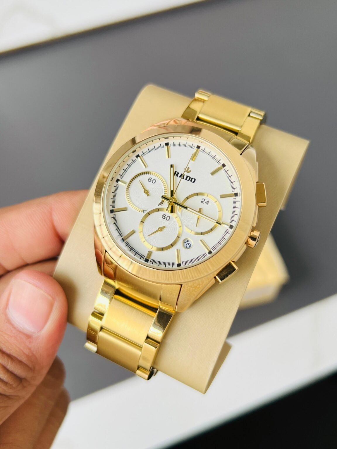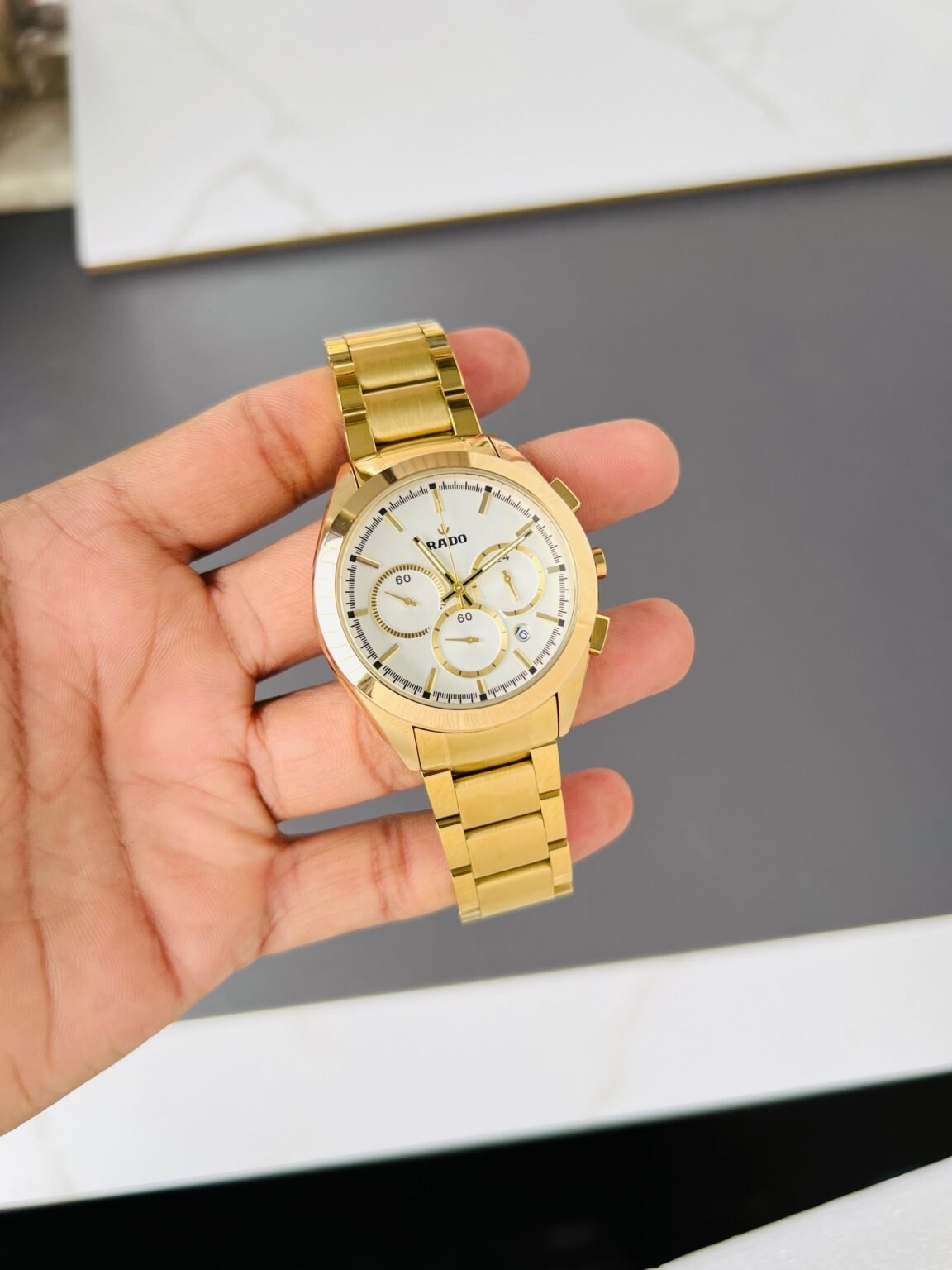The Rado HyperChrome Steel watch is a striking piece designed for those who appreciate both functionality and style. With its robust 45mm dial, it’s not just a timepiece; it’s a statement of elegance and precision. The gold strap adds a touch of sophistication, making it suitable for both casual outings and formal events.