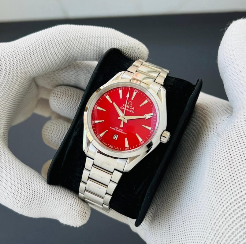 The Seamaster Aqua Terra Red Dial Automatic Watch is a stunning piece crafted for those who appreciate the fusion of style and functionality. With its striking 3D red dial, this watch is not just a timepiece; it’s a statement. The 43mm stainless steel case gives it a robust presence, while the date indicator adds practical utility.
